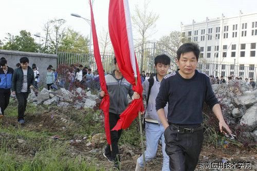 7点钟,在校长助理李红波,校工会主席、学生处副处长谢自强以及其他老师的带领下,同学们步行了近一个小时来到了沅江桃花源大桥下面参加植树活动。这次活动还专门请来了农林方面的专家:鼎城区绿化委的颜书记,贵仁祥、莫纬等。到达目的地后领导首先把大家集合起来提醒注意安全事项,颜书记还专门为大家讲述了关于植树的方法和技巧。接着大家就开始行动起来,不管是男生还是女生,是老师还是领导,人人都动手植树、培土,领导不仅是指挥者也是劳动者,所有领导都和同学们一起热火朝天地劳动着。因为植树工具不够,很多同学都用石头来紧培泥土,有的手上磨起了泡,却没有一个人抱怨,还不到两个小时1400多株较大树苗就栽完了,桃花源大桥下面由刚开始的荒芜变得焕然一新,同学们的汗水都熔入到了这整齐的新树林里。
