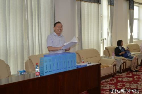 5月6日上午,省教育厅普通高校办学情况评估组对我校开始进行2015年度办学情况评估,专家有组长:省教科院副院长赵雄辉,成员:屈景森、陈拥贤、易湘良、张世英、袁礼斌,他们来自于省教育厅、省教科院和有关高校,有的还是高校领导,都是评估专家,在办学和对学校评估方面久负盛名。通过紧张地听取学校领导汇报,查看资料,分别召开中层骨干、教职工代表、学生代表座谈会,于下午召开了评估意见反馈会,对我校2015年度工作给予了充分肯定。