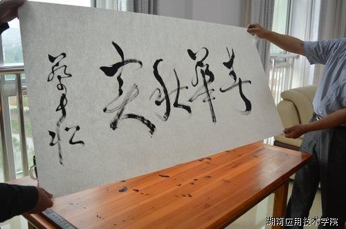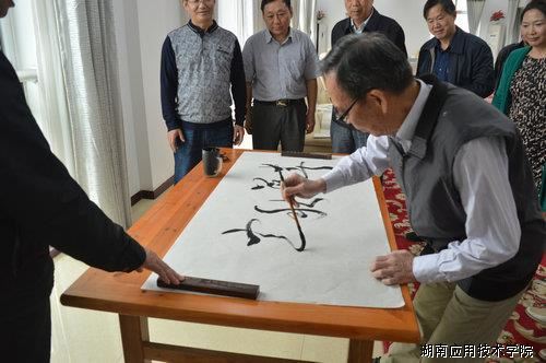 蔡长松说,看到听到湖南应用技术学院发展这么快,非常高兴。我也曾教过小学、中学和大学,深感学校办得好不好关键看学生在社会上有没有作为。学校是学生安身立命之处,要提高学生动手能力,你们办的是应用技术学校,符合提倡的“工匠”精神,定位非常正确,既符合国家要求,又符合当前实际,方向对,前景一定很好。会后他欣然提笔,为我校题词:“春华秋实”。
