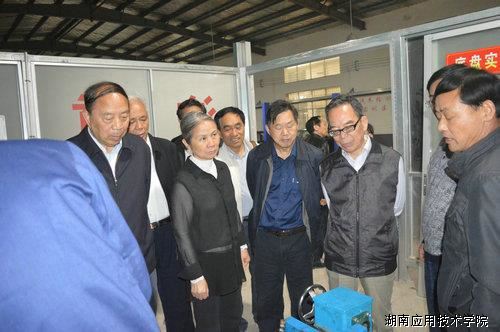 蔡长松一行观看了学校发展规划模型、考察了学校科技产品、到实训车间看了学生的操作、浏览了两校区校园校貌。在会议室里,观看了学校宣传片,听取了学校领导的汇报,对我校教育教学成绩给予了高度评价和充分肯定。