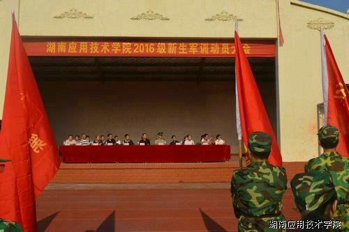 上午8时,在西校区体育场举行了隆重的2016级新生军事训练动员大会,学校党委、董事会、行政领导和二级学院、部门主要负责人在主席台就坐,主要领导有董事长李少夫,新任院长陸晨教授,党委副书记陈文斌,副院长樊启毅、夏维福、王文龙、李新华等。3000多名新生精神饱满齐聚操场,55名军事教练员站立前排。大会由副院长樊启毅主持,在隆重的国歌声中开始。今年军训所不同的是教练员全是我校自已训练的,全是本校军事爱好者协会成员,经过近一年业余时间和近来15天的专门训练,在原驻港部队班长、现学校武装部副部长汪鹏辉的严格指导下,达到教练员的水平,曾受到常德军分区司令员李辉忠的高度赞扬。动员会开始,教练员们进行了队列和格斗表演,赢得院长的高度赞扬和全场热烈掌声。