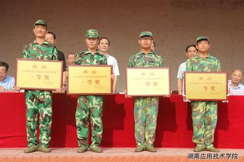 大会8时正式开始,副院长樊启毅主持会议。这时全体起立,在奏唱庄严的《中华人民共和国国歌》后,陸晨校长在总教官汪鹏辉的陪同下,检阅参训学生,每到一个方队,亲切问候“同志们好!”大家齐声响亮回答:“首长好!”“同志们辛苦了!”“为人民服务!”完全按军队条令进行。随后各方队进行分列式,汇报两周军训的成果。各队认真严肃,一举一动完全按条令进行。领导们凝神观看,各位裁判精细打分。接着夏维福副校长进行军训总结,他概括了军训优点和存在的不足,值得以后发扬和记取。学院武装部长、学生处长蹇少祥宣读了表彰决定, 表彰训练扎实的连队和个人。