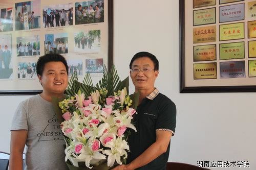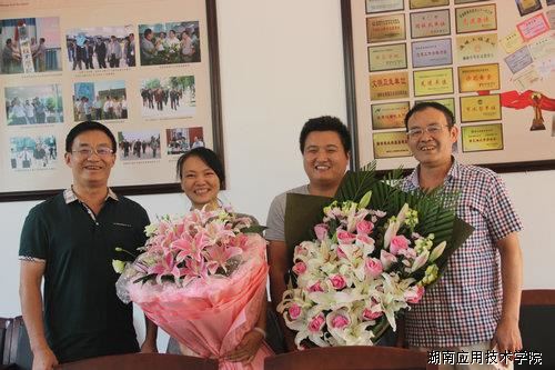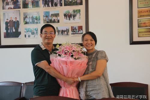 9月21日下午,董事长李少夫在西校区会议室亲切会见了两位年轻教师,并向他们赠送鲜花,祝贺两位青年老师创下的佳绩,希望他们再接再厉再续辉煌。(电视台)