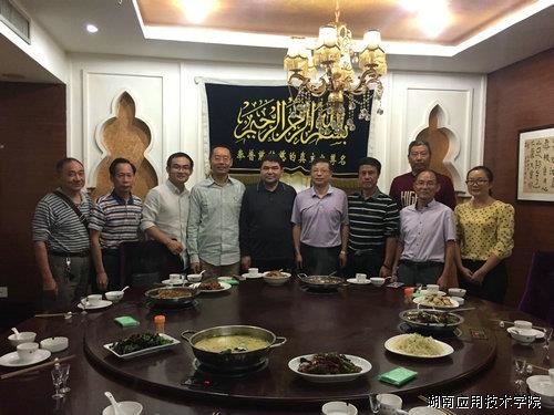 上午在长沙下飞机后学校派专车接到常德,为尊重维吾尔民族习惯,学校特地在清真第一春设午宴招待了他,陸晨校长、夏维福副校长、谢自强主席、外语学院李旋旗副院长、校办梅艳副主任、学生处贺修裕副处长、校办陈志华同志,以及常德职业技术学院领导陪同共进午餐。许克来提色依提老师非常高兴,表示不负厚望,履行好职责。