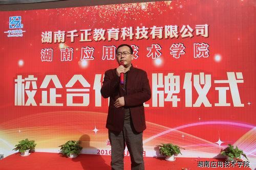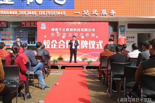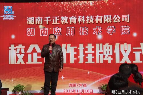 2016年11月10日在常德市鼎城区我校与湖南千正教育科技有限公司举行校企合作挂牌仪式,旨在开展多层次、多形式、多领域的合作,实现校企资源的有机结合和优化配置,培养经济社会发展需要的人才。