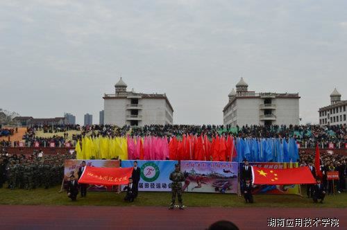 11月24日,我校第十四届田径运动会在西校区体育场举行,7支代表队近千名运动员精神抖擞参赛,简短隆重的开幕式给比赛注入了强大精神动力。