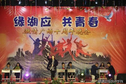 12月1日晚,由校团委主办的“激情湖应 缘梦青春”激情广场十周年庆典晚会在东校区演艺厅隆重举行,晚会让所有师生感受到了青春活力及凌云壮志的魅力和壮美。请看报道: