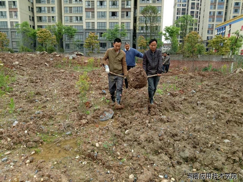 前来参加的领导和人员有副校长夏维福、工会主席谢自强、校长助理李红波,院办其余负责人,学工处负责人,校园电视台负责人,督评办人员,人事处人员,丁德珍同志带来10多名宿管老师,就是这些宿管老师在植树中挑了大梁,男老师抬树,女老师挖坑填土,干部得欢、很内行。在植树中,大家换起来干,劳逸结合,工效倍增。夏校长还和大家一起讲笑话,讲一些“土得掉渣”的土话,在说笑中很快就完成了任务。(校办)