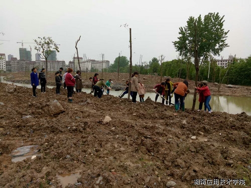 27日上午,院办组织在院内植树,近30人积极参加,尽管泥巴很深,大家穿着雨鞋,有的来不及换鞋干脆皮鞋胶鞋着泥也来参加,在绿化队长陈启球的指导下,2个小时就完成了任务。