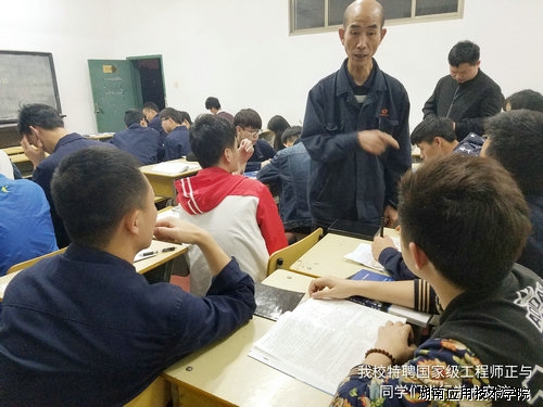 4月26日大雨滂沱。下午14时,校长陆晨及机电工程学院院长李新华,副院长刘吉普、侯飞燕等领导驱车湘潭江麓技工学校,看望在此实训的14级机制本科的“湖应”学子,学子们倍添学习动力。