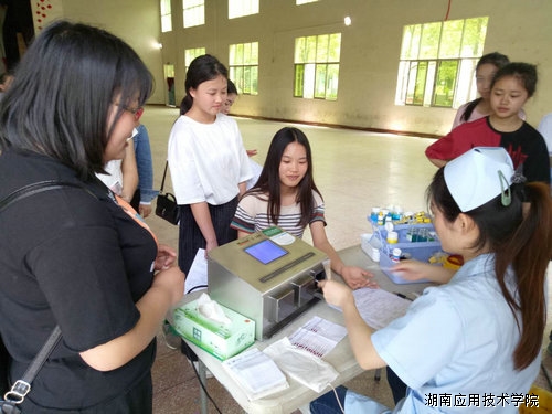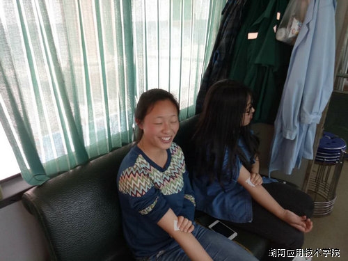 4位领导走下车来,只见贺修裕处长站在了验血人员队伍中,他要身体力行献血,同学们自觉挪出位置,好让这位刚从外地出差回来,又要与夏副校长研究学生工作的领导先献血,他的行动也极大的鼓舞着前来献血的学生。青年志愿者黄英、周文惠、潘宇等热情为大家服务,还自己掏钱为大家买来红糖给大家送红糖水喝,潘宇还加入到了献血的队伍中,准备验血后接受采血。东校区的专业学院领导刘治国、高作梅等到场做工作,一个下午师生献血热情不减。(校办)