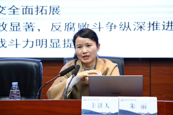 宣讲会特邀常德市委宣讲团成员、市委党校经济学教研部主任朱丽副教授作专题报告。朱丽以《夯实基础 全面发力 奋力开创中国式现代化新局面》为题,围绕《中共中央关于制定国民经济和社会发展第十五个五年规划的建议》,从“十五五”时期的历史方位、目标原则、战略部署和根本保证四个维度,对党的二十届四中全会精神进行了系统解读。