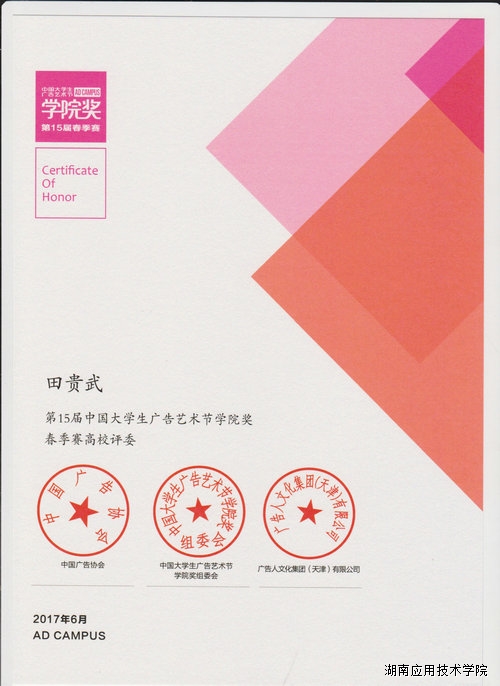 2017年6月4日,第15届中国大学生广告艺术节学院奖评审活动开始,我校设计艺术学院院长田贵武教授受邀担任本次全国高校评委,此消息振奋了该院全体师生。