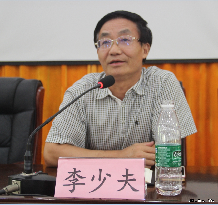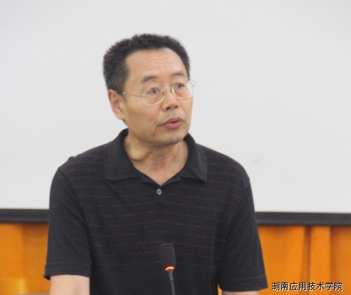 党委书记李钢教授讲话,他代表学校党委向新加盟湖应的51位老师表示热烈的欢迎!向受到表彰的先进集体和优秀个人表示诚挚的祝贺!向辛勤工作在教学科研、管理服务一线的教职员工致以节日的问候和崇高的敬意!随之,李钢向大家提出了三点要求,一、落实立德树人根本任务; 二、增强本科教育办学意识; 三、倡导尊师重教良好风尚。他说,学校要开展丰富多彩的校园文化活动,激发教师的主人翁精神,增强每一位教职员工的获得感,大家齐心协力将湖南应用技术学院建设成为一个美丽花园,和谐校园,幸福家园。