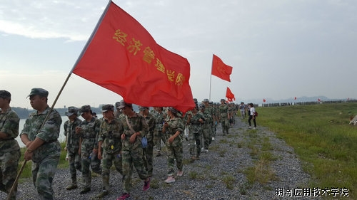 7时30分,新生们在军训教官和辅导员等老师的带领下,高擎连旗,从东校区出发,途经沿江风光带、同德驾校返回老校区。为安全有效地保障行军拉练的进行,学校提前进行了学员动员大会,告诫学生安全注意事项,并且鼓励大家要互帮互助、勇敢前行。拉练途中,参训教官和辅导员老师们为鼓舞士气,组织大家一路高唱军歌、呼喊口号,并及时给身体素质较差的学生送去关心,不时提醒学生注意安全。同学们互相搀扶、互帮互助,共同战胜军训劳累及天气闷热困难,即使路程较远、身体不适,但是所有学生都始终保持高昂士气、饱满热情,按照既定路线圆满完成了任务。