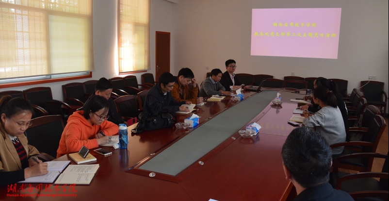 10月27日下午4点,教务处党支部在新校区25栋104会议室举行了第二次主题党日活动。来自教务处、科技处、图书馆、实训中心四个部门的党员同志聚集在党旗下,学习党的十九大精神。