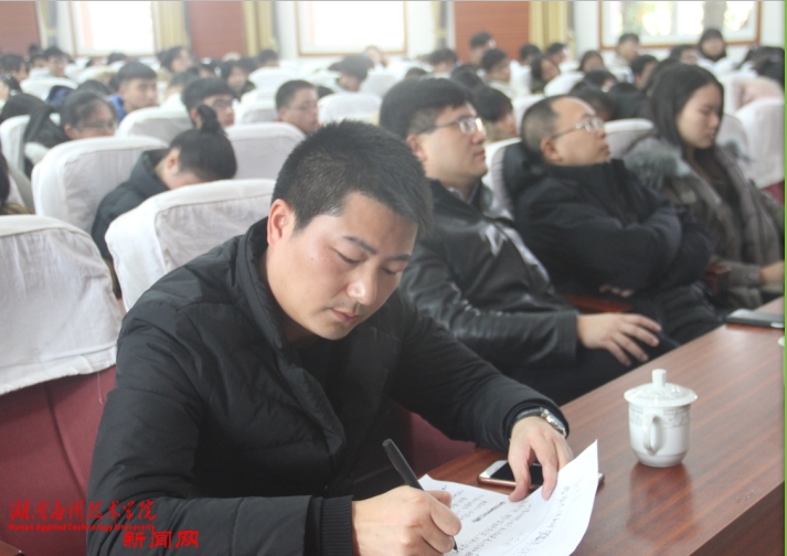 1月10日下午,著名当代作家、传统文化研究者雾满拦江来校做了题为“同学,他们只是欺负你年轻”的报告会。武陵区委常委、政法委书记李宗翰,雾满拦江私人助理颜芹芹女士、学校党委书记李钢、党委副书记兼纪委书记陈文斌、相关处室负责人、各二级教学院分管学生工作副院长以及来自各个学院的300余名学生听取了讲座。讲座由学生工作处副处长李波主持。