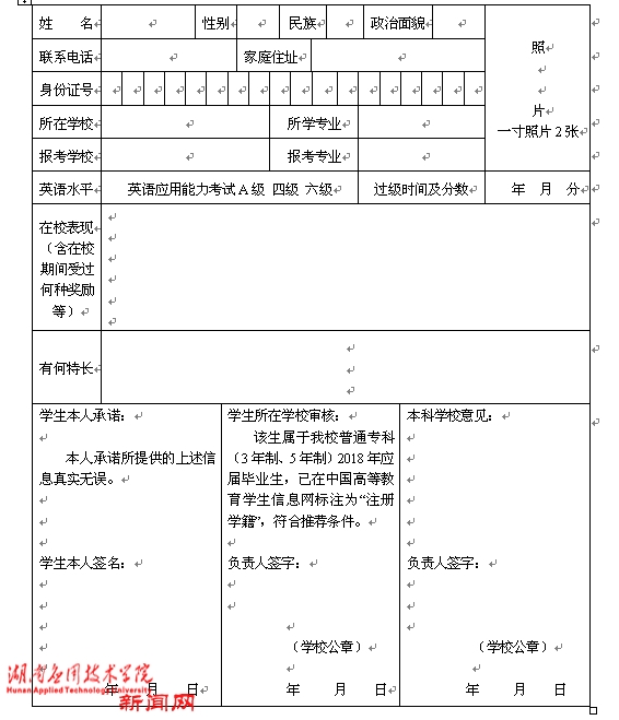 2.湖南省普通高等学校学生2018年“专升本”报名表