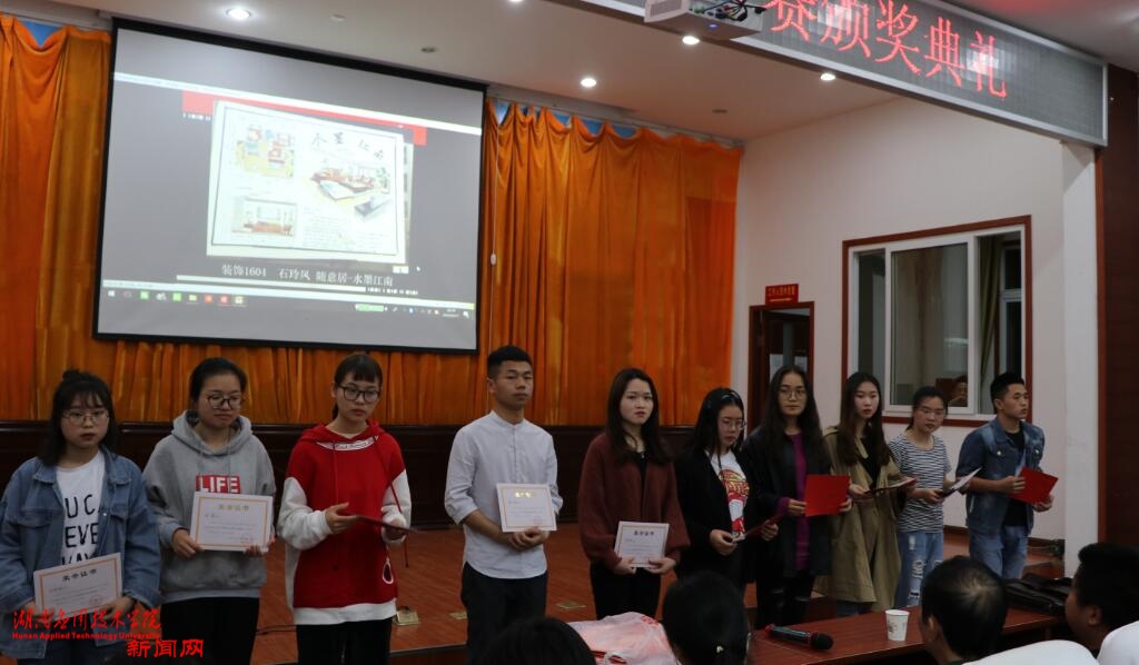 颁奖典礼由杨敏老师主持。他宣读了绘画、网页作品、摄影作品、建筑装饰制图、3D、CAD、环境设计手绘、广告设计等各类作品的获奖名单。专业教师为获奖学生颁发了荣誉证书。蒋延华、赵文青、马妮、蔡佳穗、陈洁、李俊等老师分别对各类获奖作品进行了精辟点评,增加了大家对获奖作品的理解。