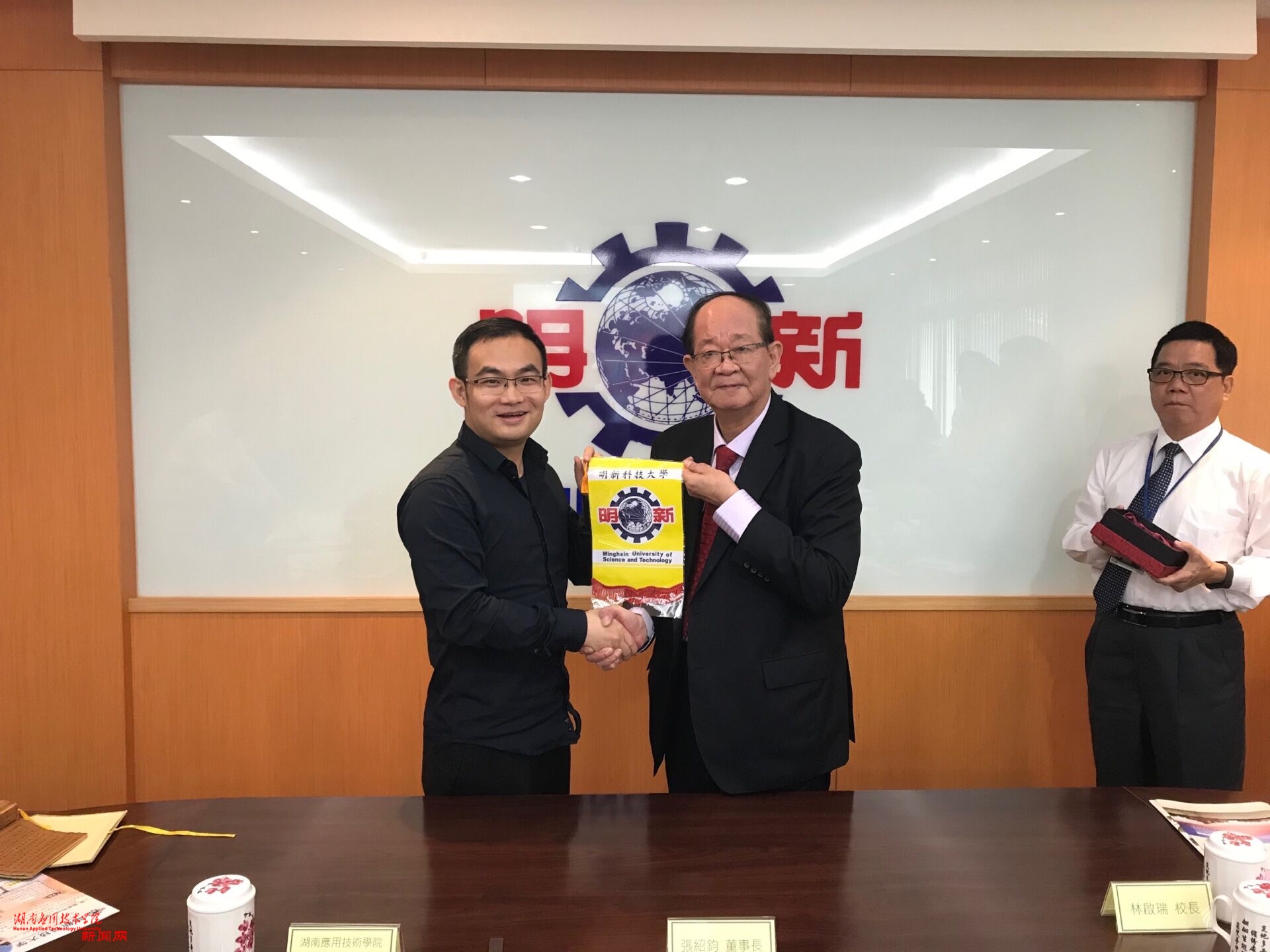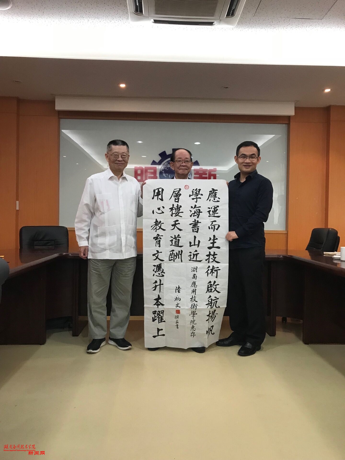 “五一劳动节”期间,我校董事、校长李旋旗博士前往台湾走访台湾民办高校。5月2日,在全球粥会世界总会长、台湾海峡两岸工业职业顾问团团长陆炳文博士等陪同下,一行4人前往台湾明新科技大学进行访问交流,受到董事长张绍钧、校长林启瑞等校领导的热情接待。交流座谈期间,李旋旗博士与张绍钧董事长等分别介绍了两校的发展历程与基本现状,并对如何发挥两校的优势拓展合作共赢新模式进行了愉快而热烈的探讨,双方均表示两校拥有众多的共同点及各自独特的优势,存在广阔的合作前景,下一步双方各个业务部门之间将不断加强沟通联络,尽快推进双方具体合作框架的形成。