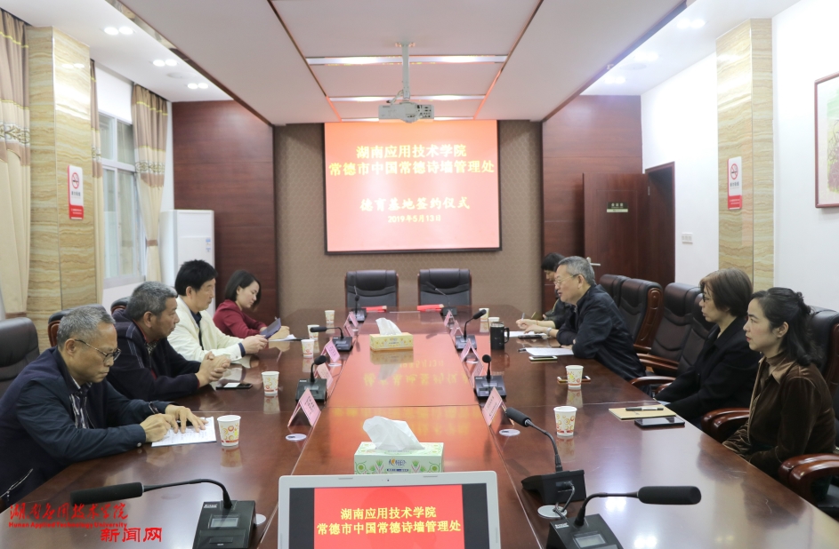 5月13日,我校与常德诗墙管理处共建大学生德育实践基地签约仪式在常德诗墙管理处会议室举行。诗墙管理处主任黄阳辉、副主任徐远秋、副主任雷杰、宣传接待科科长周慧、诗墙博物馆馆长翦凝刚,学校党委副书记、纪委书记刘孟初,党委委员、宣传部长李友谊,学生工作处处长贺修裕,文化传媒学院院长江新军,电视台台长、团委副书记卢发松参加了签约仪式。