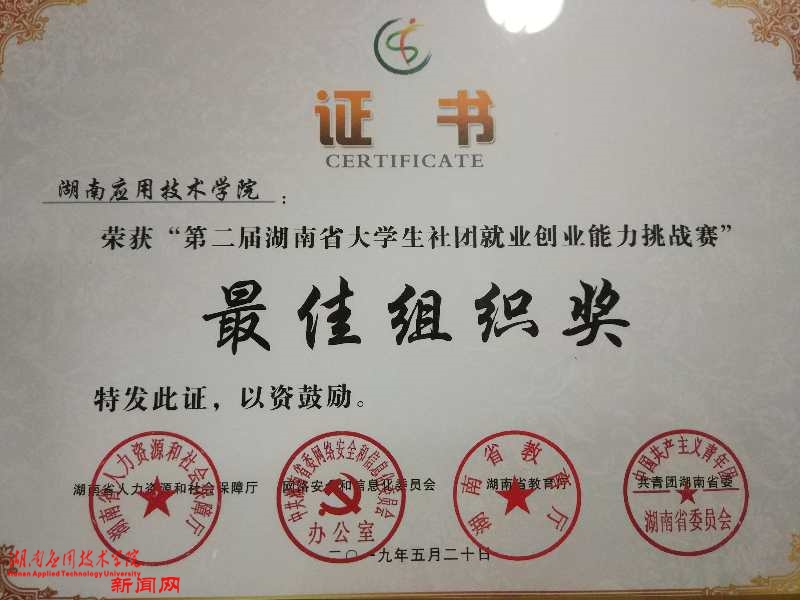 为弘扬时代主旋律,丰富社团生活、创新社团文化,培养和提高青年学生的文化艺术品味和创新意识,中共湖南省委网信办、湖南省人力资源和社会保障厅、湖南省教育厅、共青团湖南省委主办的"湖南省第二届大学生社团就业创业挑战赛”3月25日正式启动,5月20日在长沙圆满落幕。