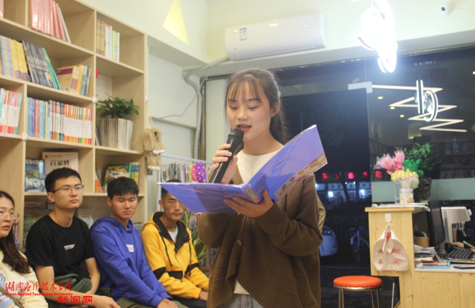 10月14日晚,学校风语文学社在风语书舍举行“听风之语”朗诵会。校长李旋旗,文化传媒学院院长江新军、副院长李中惠,风语文学社指导老师邓英和众多文学爱好者一起诵经典、品诗意。