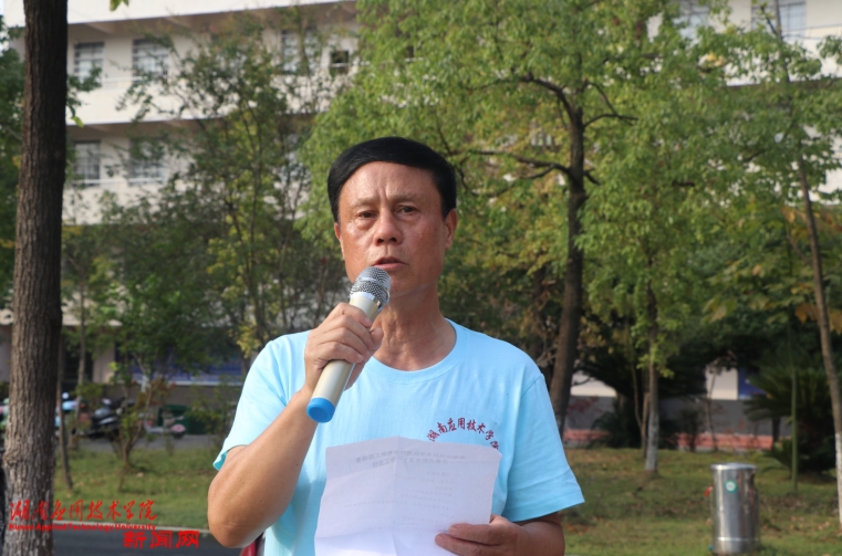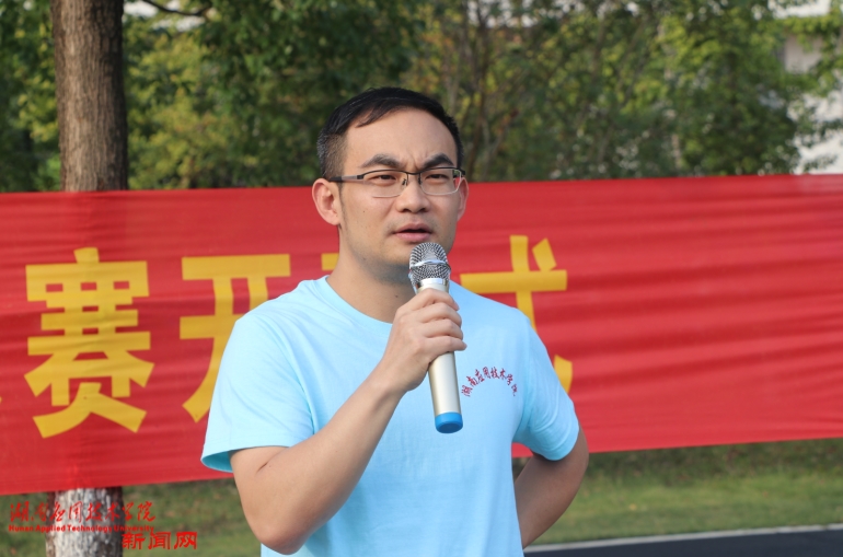 校长李旋旗致辞,他向参加本次比赛的全体老师和运动员表示热烈的欢迎和亲切的问候,向裁判员及工作人员致以诚挚的感谢。他希望全体运动员和裁判员恪守比赛规程,本着“友谊第一,比赛第二”的原则,在比赛中发扬顽强拼博精神,赛出水平、赛出风格、再创佳绩,展现湖应人敢为人先、奋发有为的精神风貌。